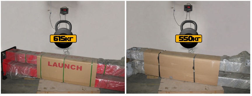 Такие характеристики как устойчивость и надежность автомобильного подъемника напрямую зависит от толщины металла используемого в стойках и надежности соединений. Одним из наиболее простых способов определения массивности конструкции, а так же кол-ва затраченого материала это взвешивание. Судя из фотографии исходя из приблизительно одинаковых габаритов конструкций, можно сказать что в подъемнике Launch использовано больше металла, и подъемник имеет более толстые стенки колонн, а соответственно более устойчивый к нагрузкам.