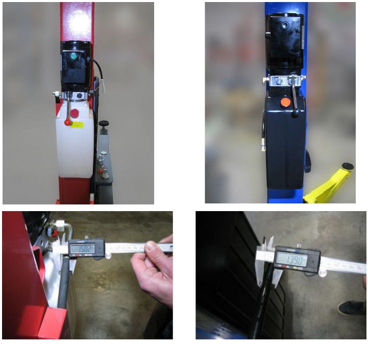 Підйомники синього кольору мають стандартний китайський гідравлічний насос зі звичайним шлангом діаметром 14мм.