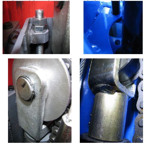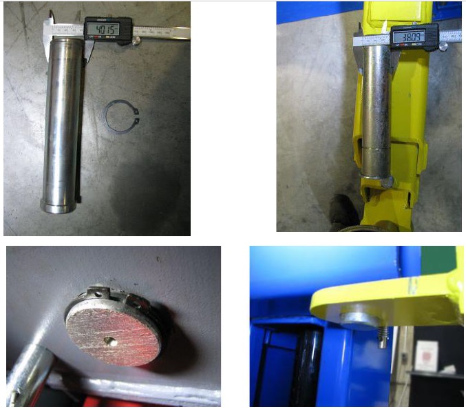 Так у підйомниках LAUNCH пластина кріплення лап до каретки товщиною 16мм, а шпилька цільнолита, довжиною 205мм з діаметром стрижня 40мм, діаметром фланця 45мм. Фіксуюча шпилька оснащена стопорним кільцем.