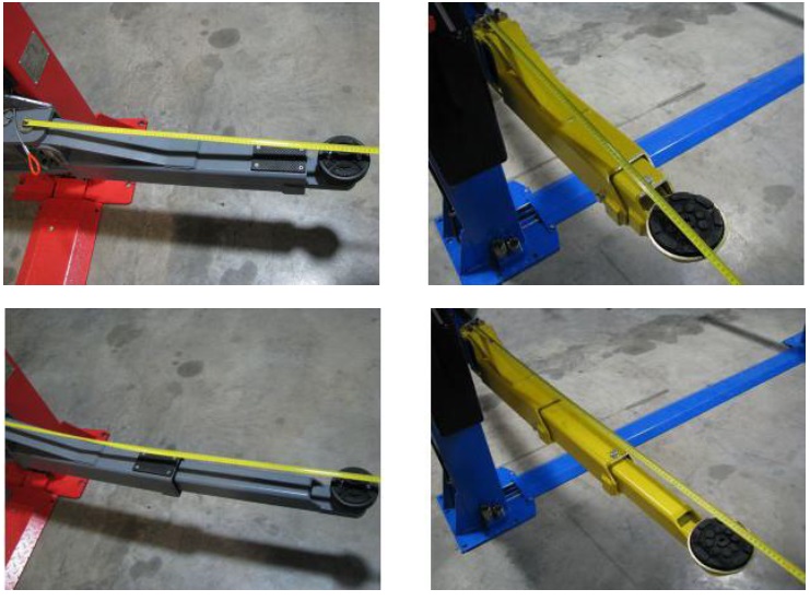 Так у підйомниках LAUNCH передні та задні лапи асиметричні. Передня лапа: мінімальний виліт – 600мм, максимальний виліт – 1100мм (3 секції). Задня лапа: 900мм – 1400мм (2 секції). Також передбачено додаткову опору довжиною 650мм, для роботи з малими колісними базами (автомобілі типу Smart).