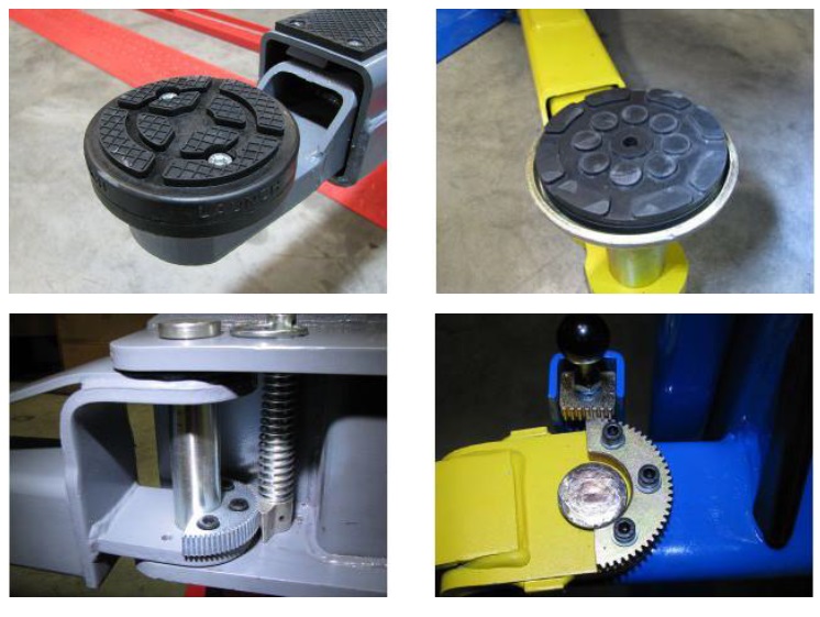 Опорний п'ятак підйомників синього кольору має товщину 25мм і оснащений тільки гумовою накладкою, що уможливлює контакт металу лапи та автомобіля.