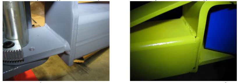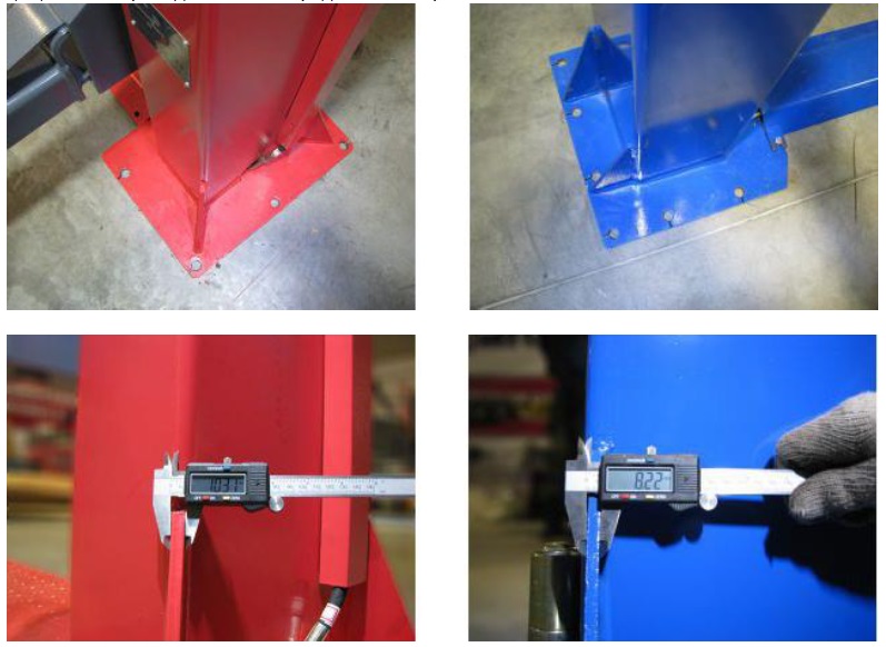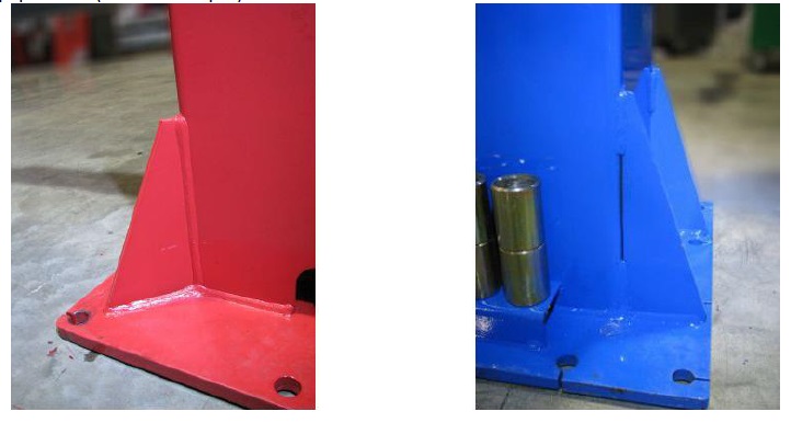 Як видно на фото, усі зварні шви підйомника LAUNCH безперервні та виконані роботом в автоматичному режимі. У синього підіймачі зварні шви виконані ручним дуговим зварюванням, місцями шви переривчасті (точкове зварювання).
